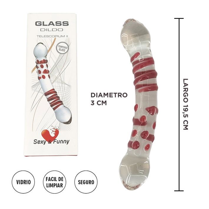 Este dildo está fabricado en vidrio borosilicato con la dureza justa que estabas buscando, también es perfecto para sumergirlo en agua helada o caliente y jugar con las temperaturas, de fácil limpieza, diseño ergonómico con cuerpo semi curvo texturado y dos puntas redondeadas.