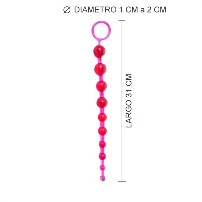 Varita anal diseñada especialmente para una dilatación anal gradual, estimulante, cómoda y sin dolor, compuesta por 10 bolitas de 2cm hasta 1cm en la punta, para ser introducidas de a una y retiradas de la misma forma o de un tirón al momento del orgasmo.